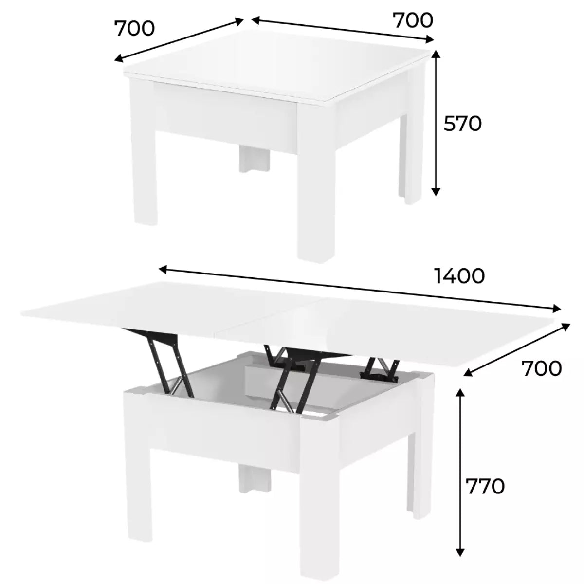 Mechanizm transformacji jest prosty w obsłudze i niezawodny, dzięki czemu w każdej chwili możesz dopasować wysokość oraz powierzchnię blatu do aktualnych potrzeb. To idealny wybór do małych mieszkań, kawalerek czy nowoczesnych salonów, gdzie liczy się każdy centymetr przestrzeni.