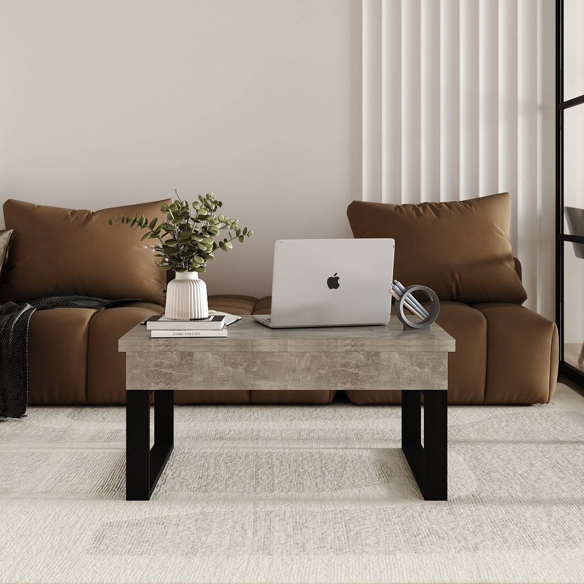 Ława rozkładana podnoszona Domero 120×88 Beton jasny — Wysyłka 03.10.26
